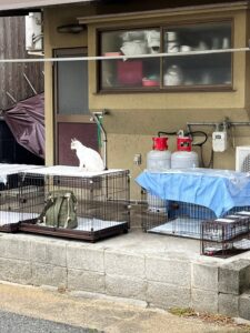 2日目も、たくさんの猫ちゃんが手術を受けるために待機する中、1日目に手術を終えた子達を元の場所にリターンする作業、3日目に向けて捕獲する作業が同時並行で行われました!!