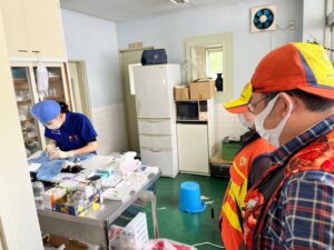 翌日、いよいよ手術開始日です。クリニックスタッフが全員、船で手術機材を担ぎ込みました。手術会場ではたくさんの島民の方々が受付や捕獲、掃除等のお手伝いをしてくださいました😌