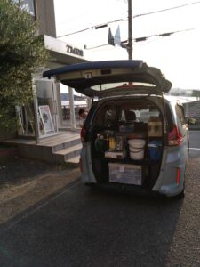クリニックから車に積み込まれる数々の機材たち・・・