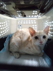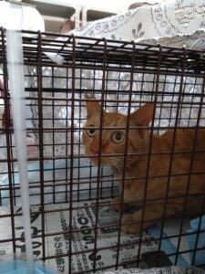 スタッフKの手にかかれば、大抵の猫たちは洗濯ネットにおとなしく入れられ、手術前の注射を猫の負担なく実施できます。