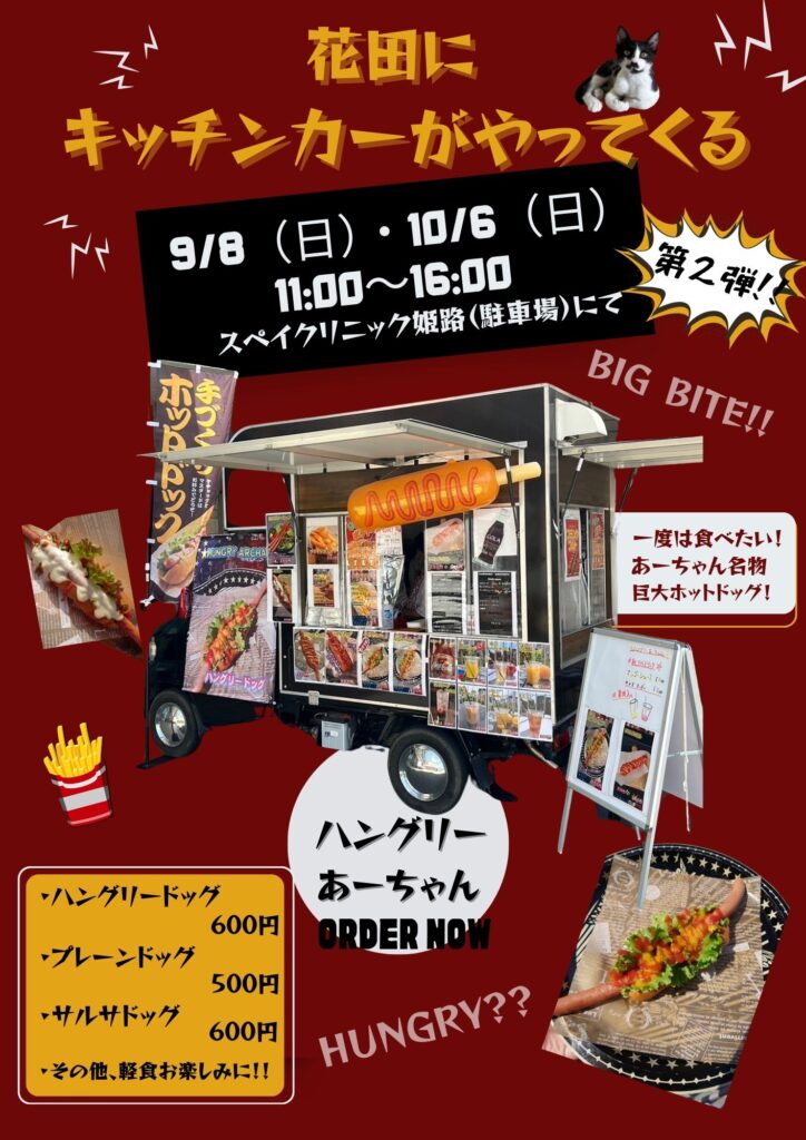 見たこともないような手作りBIGホットドッグを販売されている”ハングリーあーちゃん”様がキッチンカーにてご出店くださいます!!