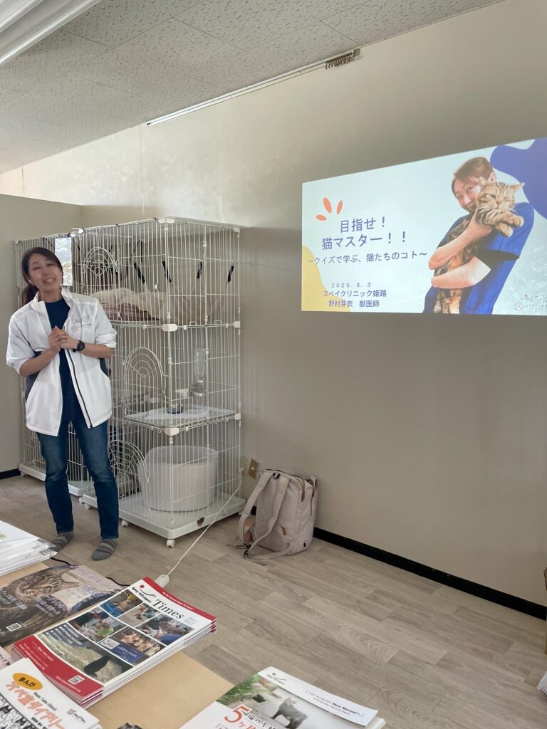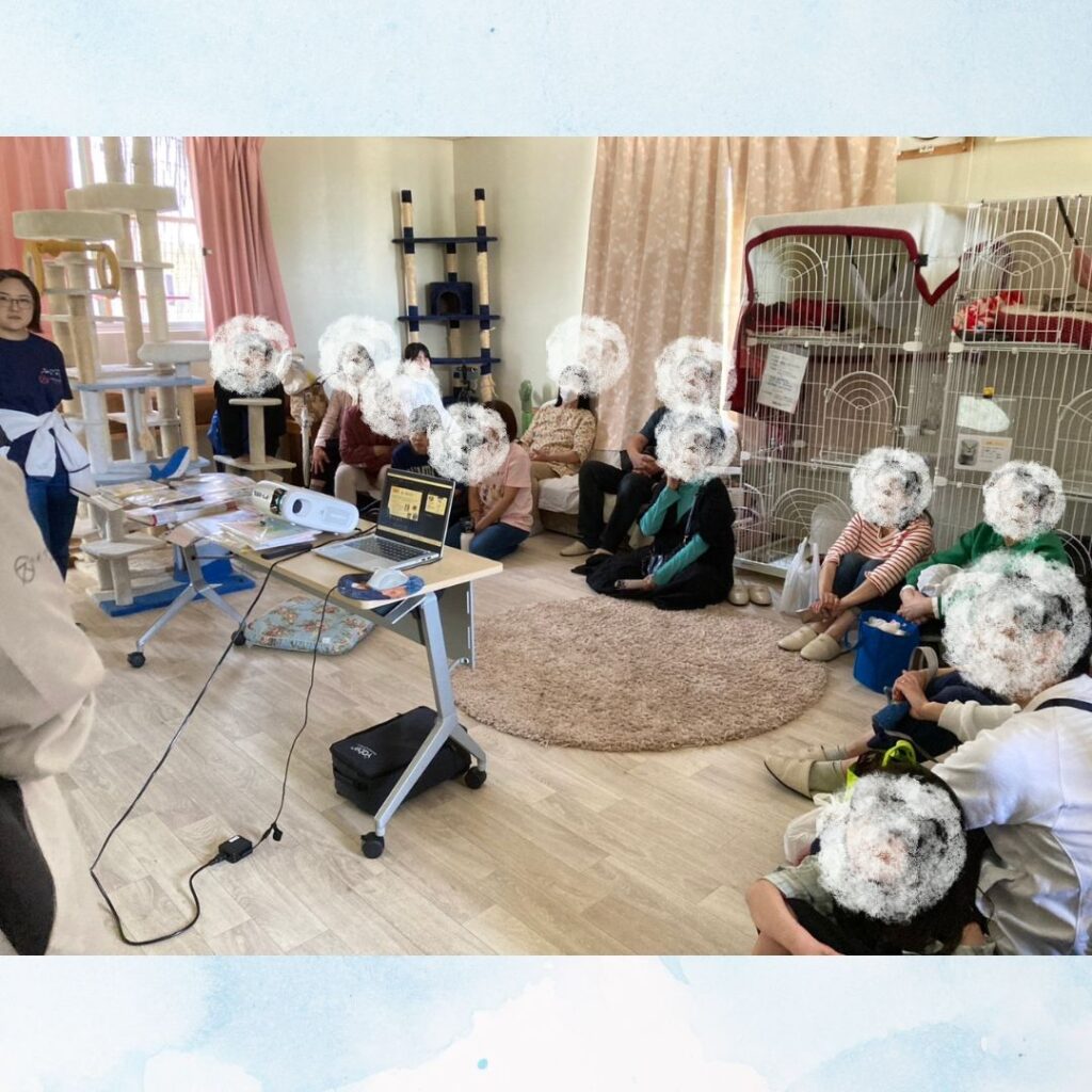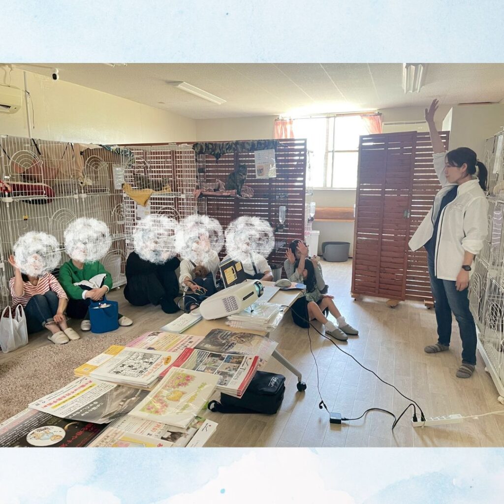 保護猫ちゃんに囲まれた空間で、お子様向けのクイズ大会形式で猫にまつわるうんちくを小一時間お話させていただきました~!!