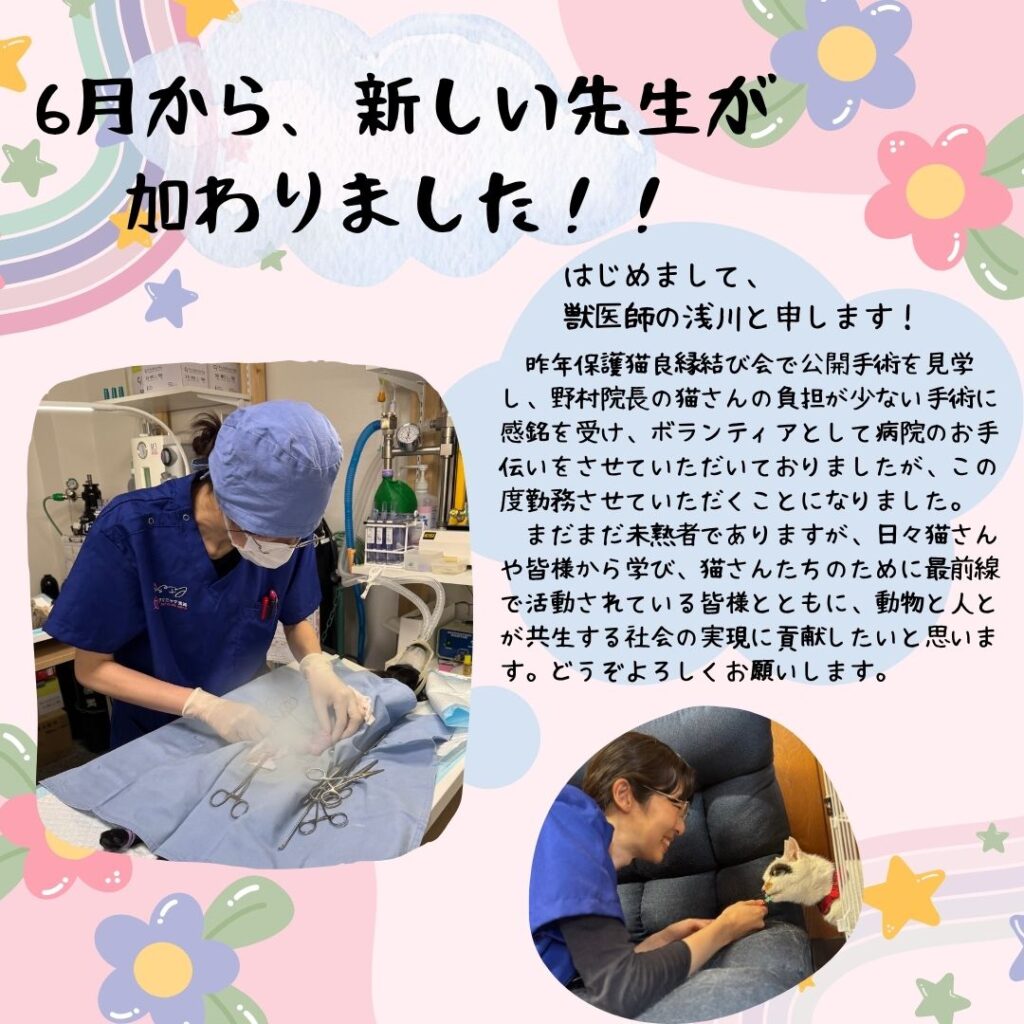 ご紹介が遅れましたが、6月からスペイクリニック姫路に新しい獣医師が来てくださることになりました!!