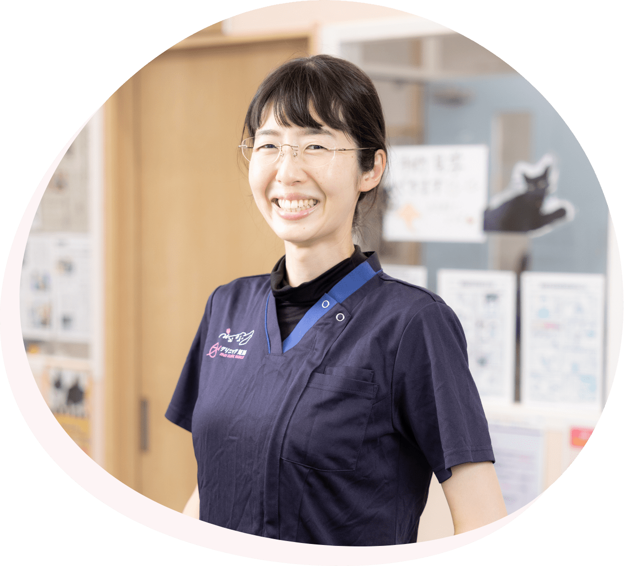 野村院長の猫さんへの負担が少ない手術をはじめスタッフの方達の猫さんへの丁寧な接し方に感銘を受け、また、「一匹でも多くの恵まれない子を幸せに」という目標に共感し、勤務させていただいております。